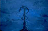 ![]() The Sacrifice of Iphigeneia, 3' x 4'. The cells floating down on the left are apoptotic in their shape. Apoptosis means "Falling Leaves" in Ancient Greek. |